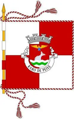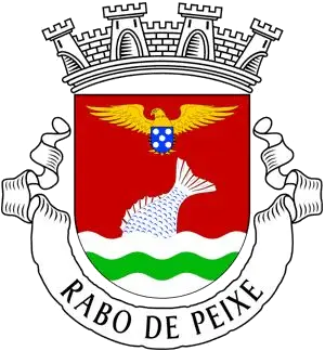 Escudo de vermelho, rabo de peixe de prata, realçado de azul, posto em barra e sainte de campanha ondada de prata e verde de três peças; em chefe, açor de ouro, sustendo nas garras um escudete de azul carregado de cinco besantes de prata. Coroa mural de prata de quatro torres. Listel branco, com a legenda a negro: «RABO de PEIXE».